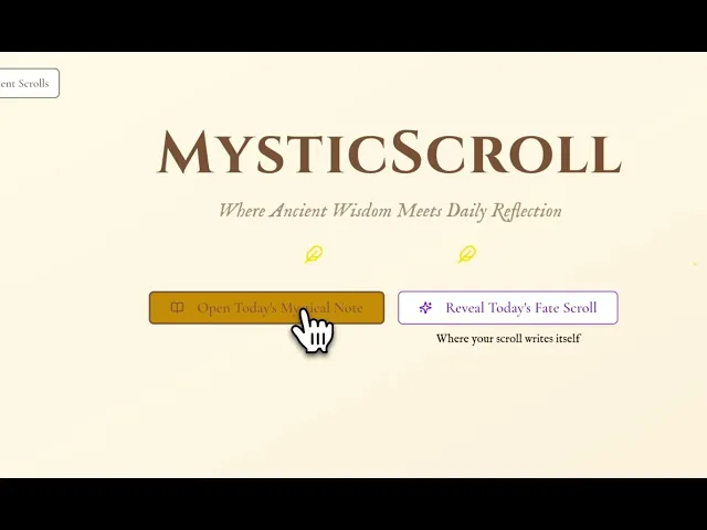 Mystic Scroll is a magical, AI-powered journaling tool that gives users a daily scroll i.e a mystical note written for them. Inspired by ritual, reflection, and aesthetic tech, the scroll is both poetic and functional.